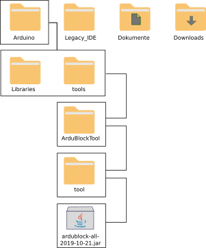auf „Neuen Ordner anlegen“ klicken und die Bezeichnung „tools“ eingeben. In diesem Ordner einen weiteren mit Namen „ArduBlockTool“ und darin den Ordner „tool“ generieren.
